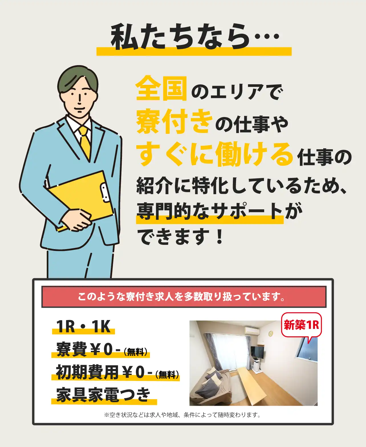 スグに寮に住みたい、スグにお金がほしい、スグに働きたい、今スグに急ぎでお仕事をお探しの方はぜひお問い合わせください! ジョブサポ 寮付き求人紹介へのお問い合わせはこちらLINEにて24時間受付中 お問合せフォームはこちら ボタン ジョブサポ 寮付き求人紹介へのお問い合わせはこちらLINEにて24時間受付中 お問合せフォームはこちら ボタン ジョブサポ 寮付き求人紹介へのお問い合わせはこちらLINEにて24時間受付中 お問合せフォームはこちら ボタン ジョブサポ 寮付き求人紹介へのお問い合わせはこちらLINEにて24時間受付中 お問合せフォームはこちら ボタン